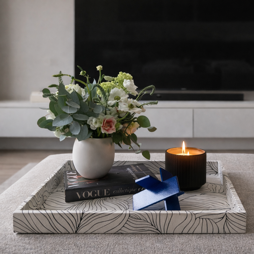 Con sus generosas dimensiones, la Bandeja Lux ofrece un amplio espacio para mostrar tus decoraciones favoritas, velas o incluso para servir bebidas y aperitivos durante reuniones. La construcción robusta garantiza durabilidad y estabilidad, convirtiéndola en una pieza práctica y visualmente impactante.