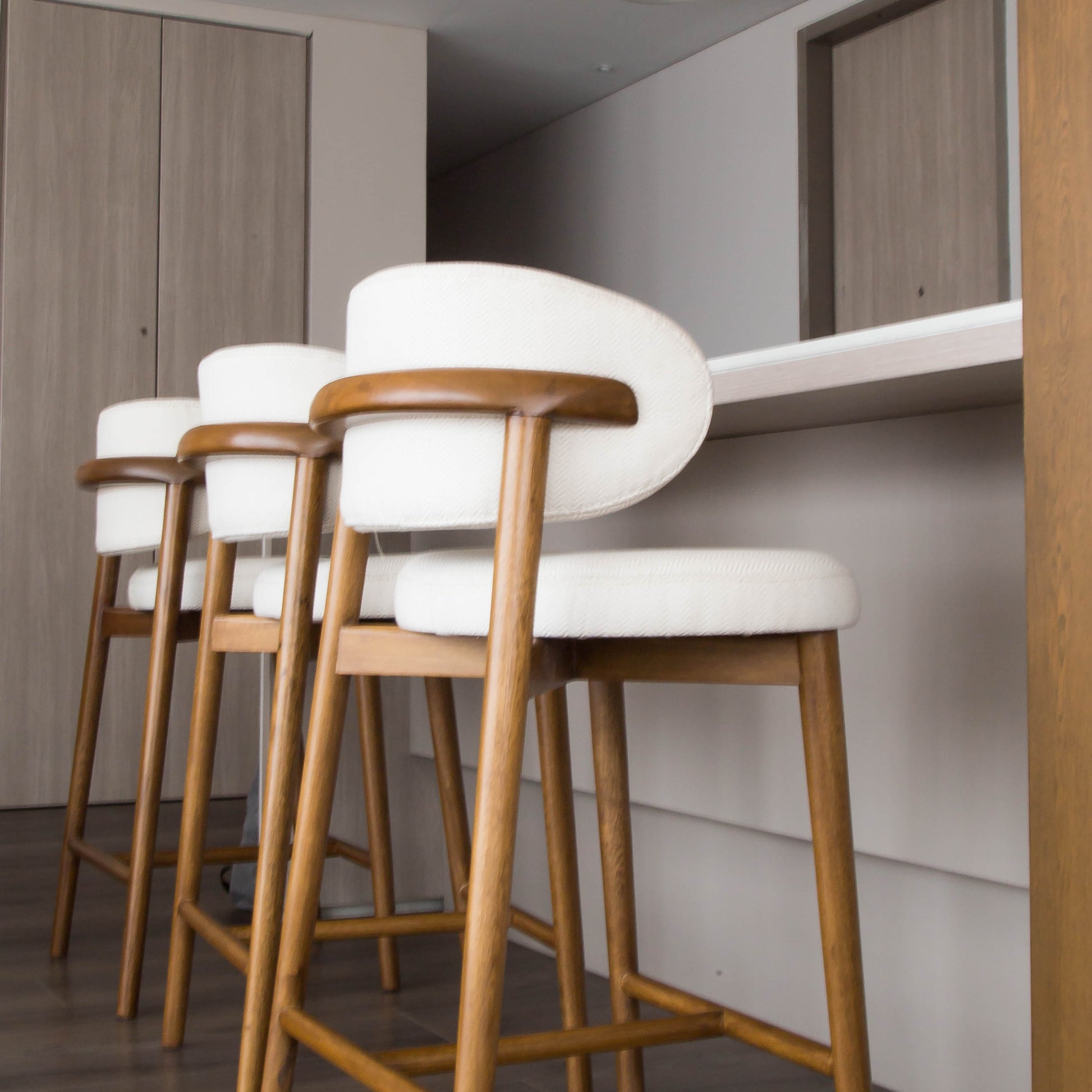 La Silla Alta Oslo combina elegancia contemporánea y comodidad en un diseño atemporal. Fabricada en madera maciza con acabado natural, destaca por sus líneas suaves y respaldo curvado que aporta soporte ergonómico. El asiento y el respaldo tapizados en tela color marfil añaden calidez y confort, convirtiéndola en la opción perfecta para barras de cocina o zonas sociales. Su diseño versátil se adapta a ambientes modernos, nórdicos o minimalistas, realzando cada espacio con un estilo sofisticado y funcional.